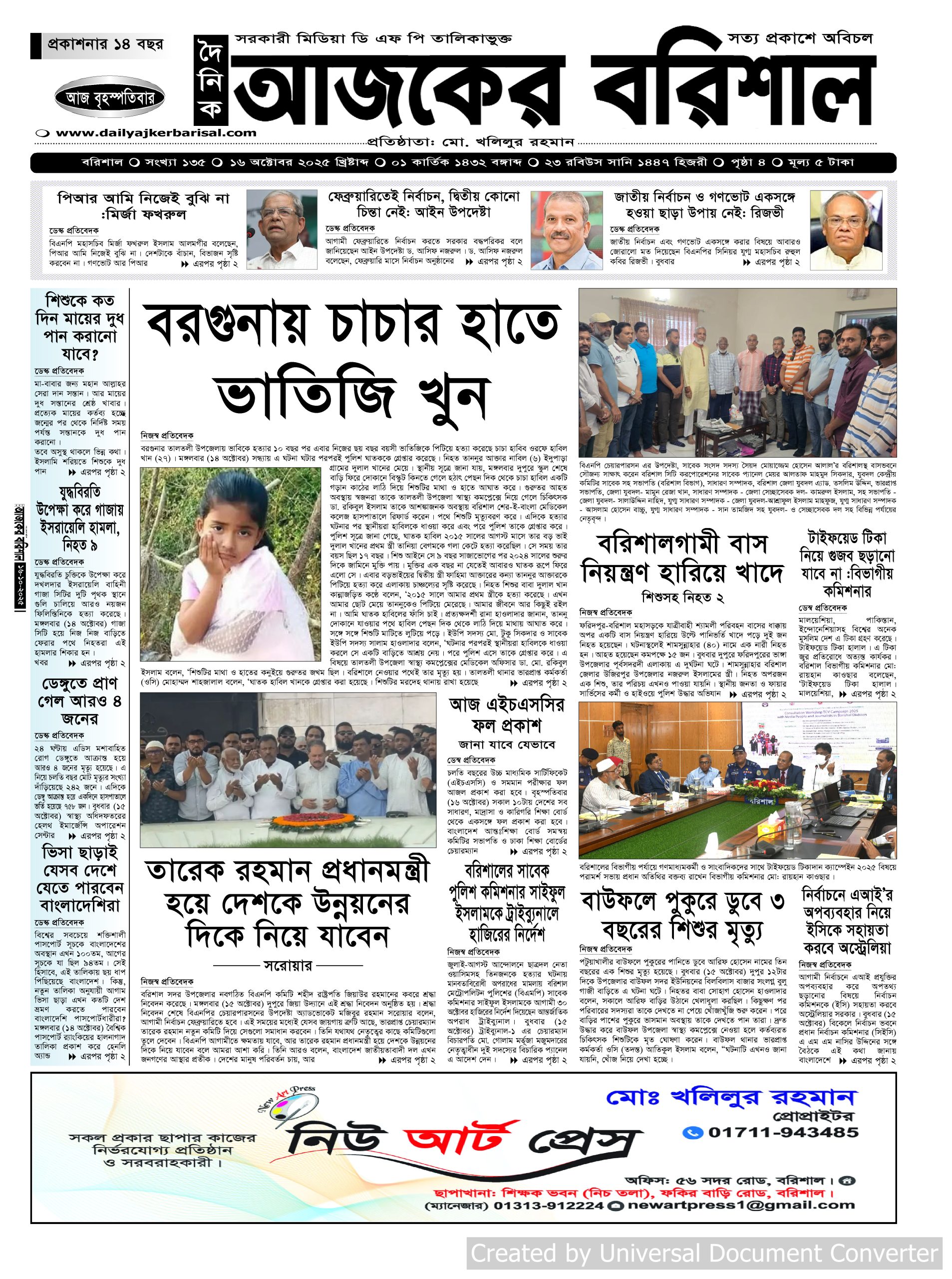 ই-মেইল:ajkerbarisal2012@gmail.com